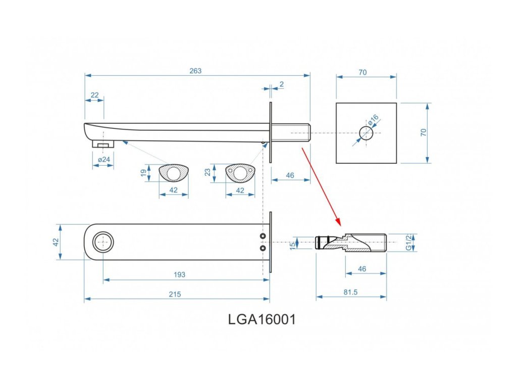 • vaňový výtok LAGUNA, dĺžka 215 mm