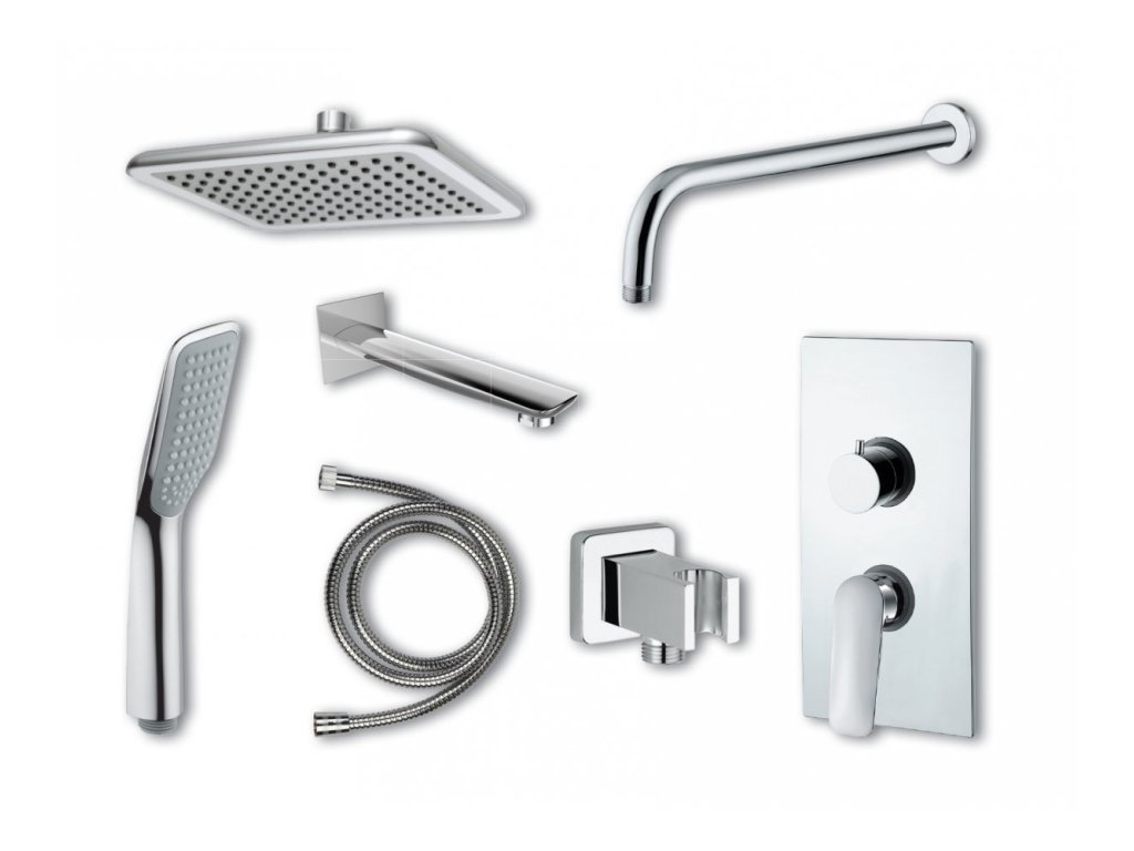 • stenová prípojka na sprchu k podomietkovej batérii, CUBE, s držiakom ručnej sprchy