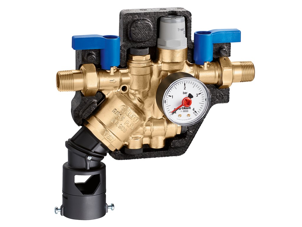 Automatická plniaca jednotka značky CALEFFI sa inštaluje na prívodné potrubie vody v uzavretých okruhoch vykurovacích systémov. Udržiava tlak v systéme na nastavenej hodnote a automaticky dopĺňa vodu podľa potreby. Spĺňa prísnu normu EN 1717 a je vybavená systémovým oddeľovačom, uzatváracím ventilom, sitkom, vstupmi na testovanie tlaku na kontrolu systémového oddeľovača, tlakovým redukčným ventilom.