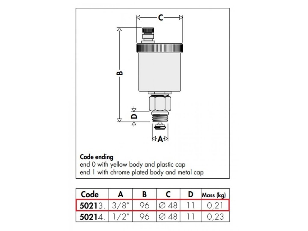 Odvzdušňovací ventil automatický MINICAL priamy, 3/8"M, PN10