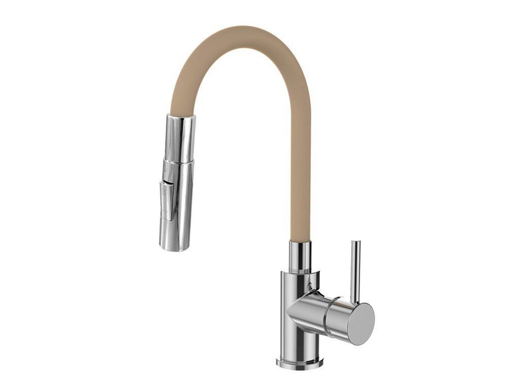 Hľadáte kuchynskú batériu, ktorá v sebe spája estetiku s funkcionalitou? V takom prípade vás nepochybne zaujme stojanková drezová batéria YOUNG S BEIGE od Aquaristo Style. Pýši sa elegantným dizajnom: kombinácia lesklého chrómu a béžovej farby dodá vašej kuchyni moderný šmrnc a eleganciu. Flexibilné ramienko v tvare "U" je plne otočné a ľahko tvarovateľné, čo umožňuje komfortné umývanie riadu, plnenie hrncov či váz a aj dosah do vzdialenejších kútov drezu. Batéria je opatrená výsuvnou koncovkou s možnosťou prepínania medzi dvomi režimami prúdu: perlátorom pre jemnejší prúd a sprškou pre intenzívnejší oplach.
