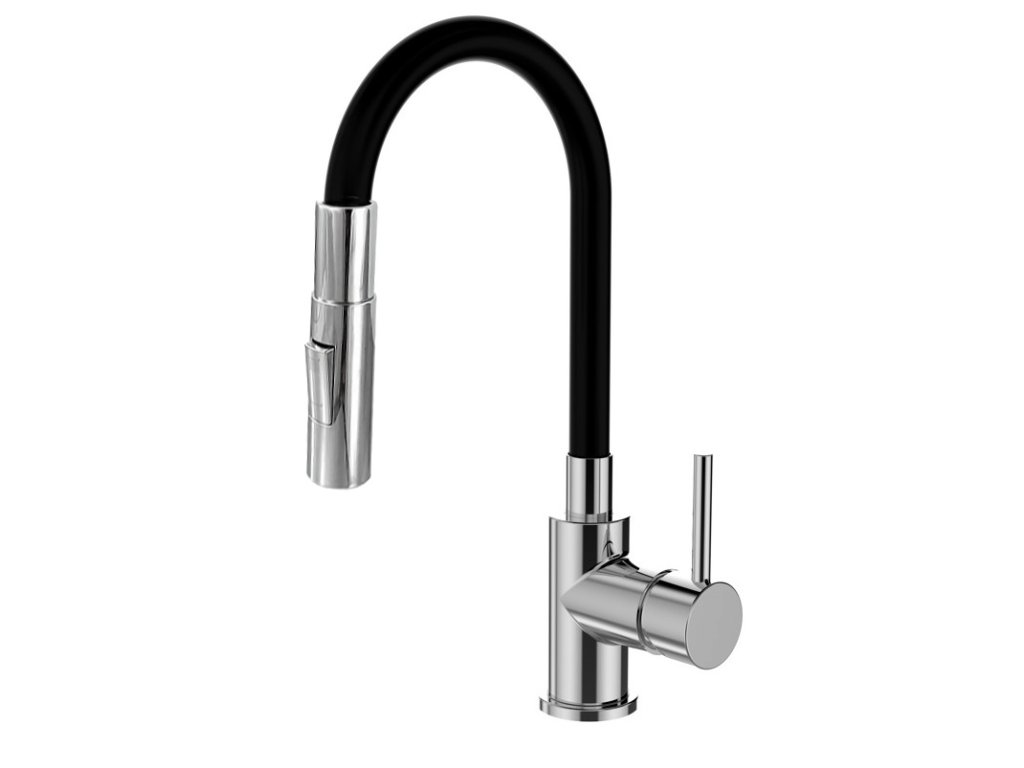 Hľadáte kuchynskú batériu, ktorá v sebe spája estetiku s funkčnosťou? V takom prípade vás zaručene osloví stojanková drezová batéria YOUNG S BLACK od Aquaristo Style. Pýši sa elegantným dizajnom: kombinácia lesklého chrómu a čiernej farby dodá vašej kuchyni moderný šmrnc a štýl. Flexibilné ramienko v tvare "U" je plne otočné a jednoducho tvarovateľné, čo umožňuje komfortné umývanie riadu, plnenie hrncov či váz a aj dosah do vzdialenejších kútov drezu. Batéria je navyše vybavená výsuvnou koncovkou s možnosťou prepínania medzi dvomi režimami prúdu: perlátorom pre jemnejší prúd a sprškou pre intenzívnejší oplach.
