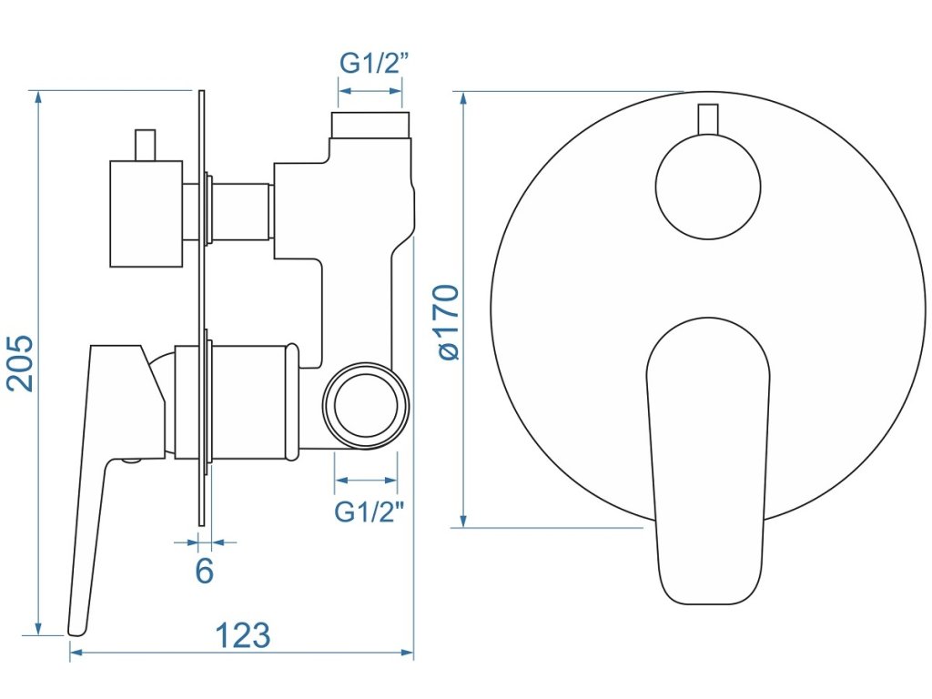 Páková sprchová podomietková vodovodná batéria zo série Dakota značky Aquaristo Style, s keramickým prepínačom, určená pre 2 odberné miesta.