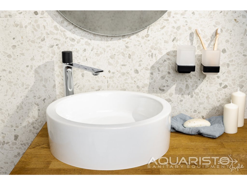 Umývadlová stojanková vodovodná batéria zo série PLATFORM ROUND značky Aquaristo Style.