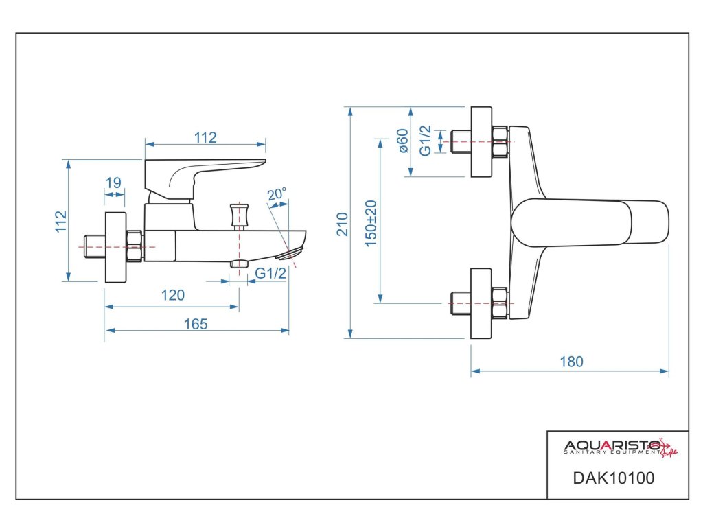 Vaňová stenová vodovodná batéria DAKOTA značky Aquaristo Style, s pákou.