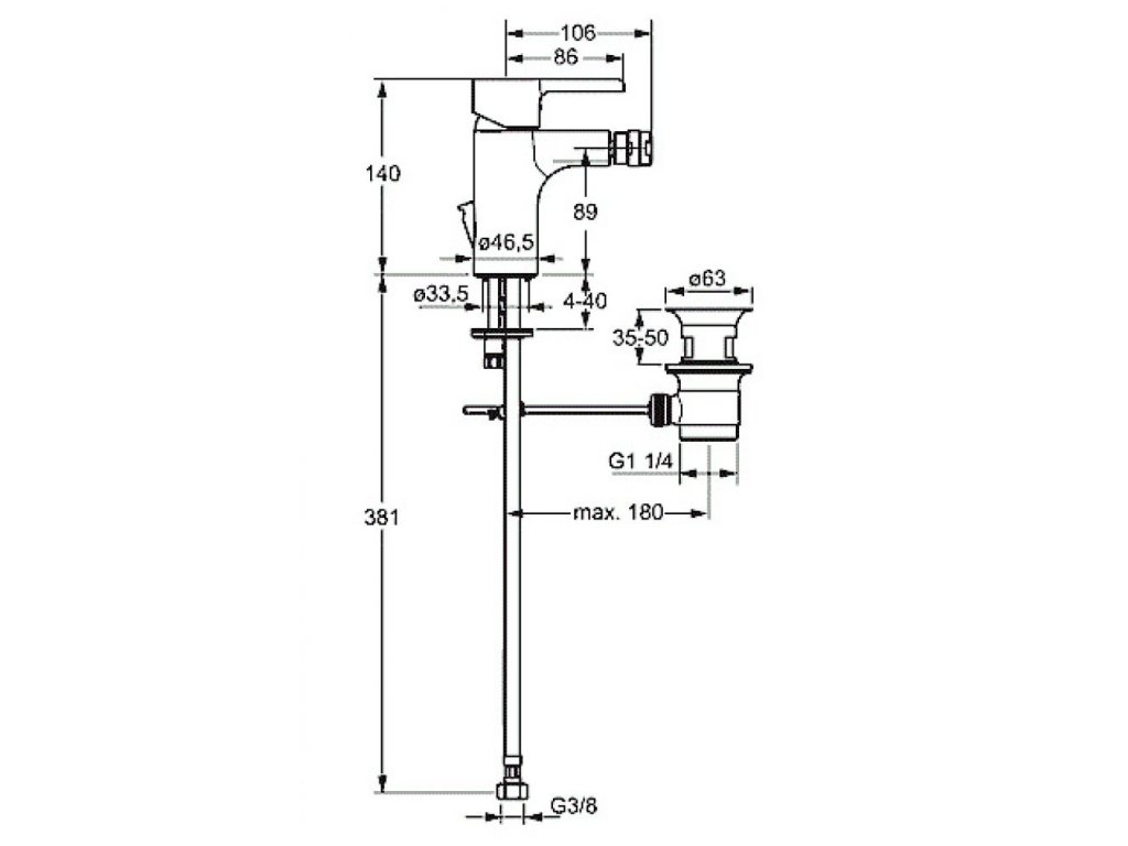 HANSAFORM - páková bidetová stojanková vodovodná batéria s odtokovou garnitúrou s tiahlom. Má pevné výtokové ramienko. Integrovaný kĺbový perlátor s možnosťou nastavenia prúdu vody.