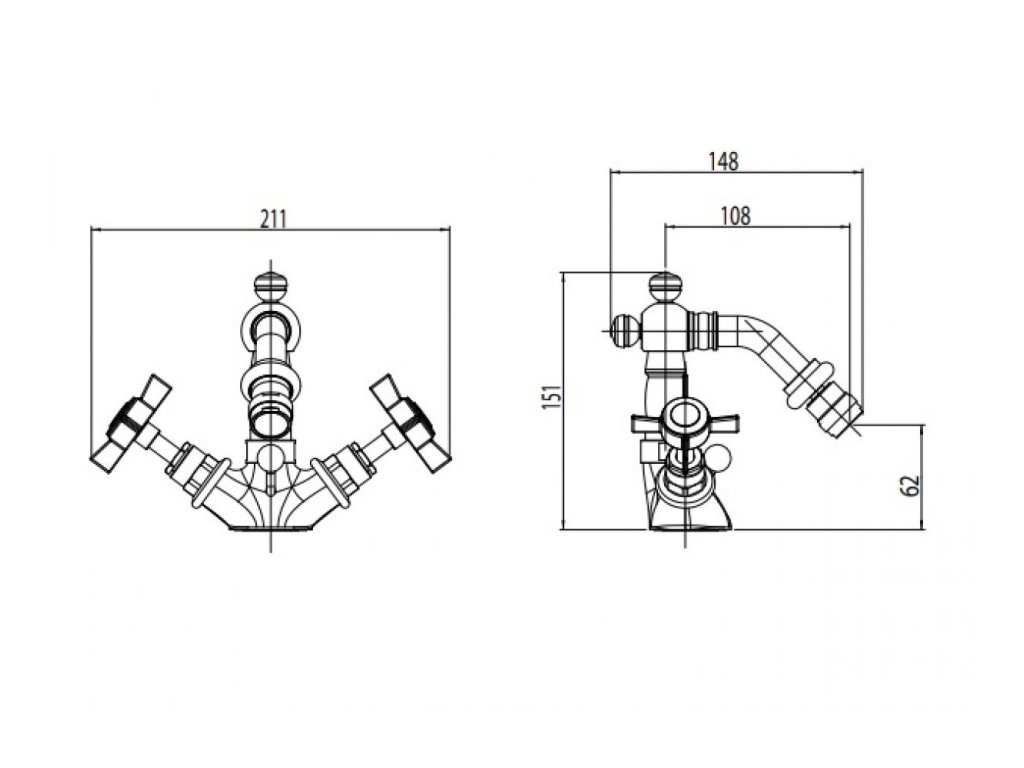 Klasická bidetová stojanková vodovodná batéria s odtokovou garnitúrou. Batéria je osadená keramickými vrškami so štandardne pólovaným ovládaním. Znamená to, že studená voda sa otvára resp. zatvára opačným smerom ako teplá.