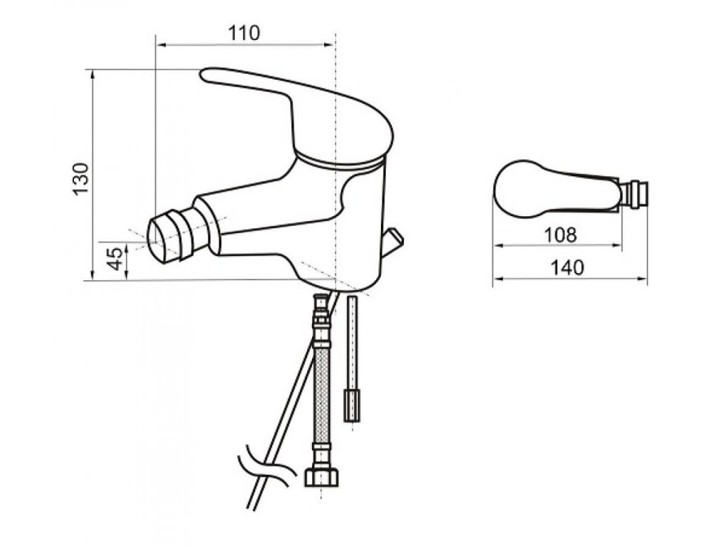 Páková bidetová stojanková vodovodná batéria s odtokovou garnitúrou.