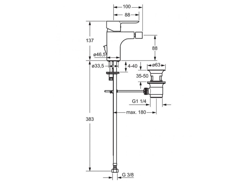 HANSALIGNA Jednootvorová páková batéria, DN 15 pre bidetprietokové množstvo: 6 l/min., merané pri 3 baroch hydraulického tlaku