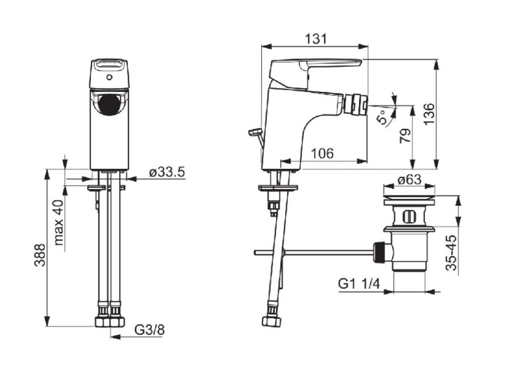 HANSAPOLO Jednootvorová páková batéria, DN 15 pre bidetprietokové množstvo: 6 l/min., merané pri 3 baroch hydraulického tlaku