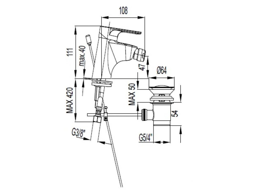 Páková bidetová stojanková vodovodná batéria s odtokovou garnitúrou.