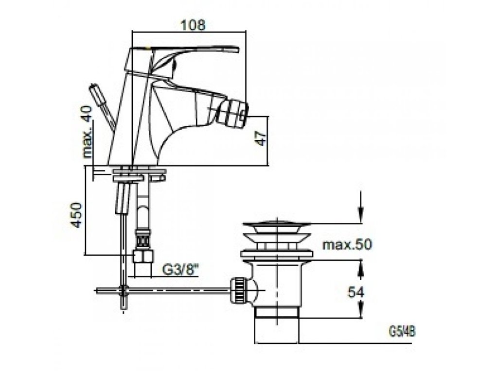 Páková bidetová stojanková vodovodná batéria s odtokovou garnitúrou.
