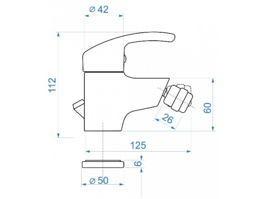 Páková bidetová stojanková vodovodná batéria s odtokovou súpravou.