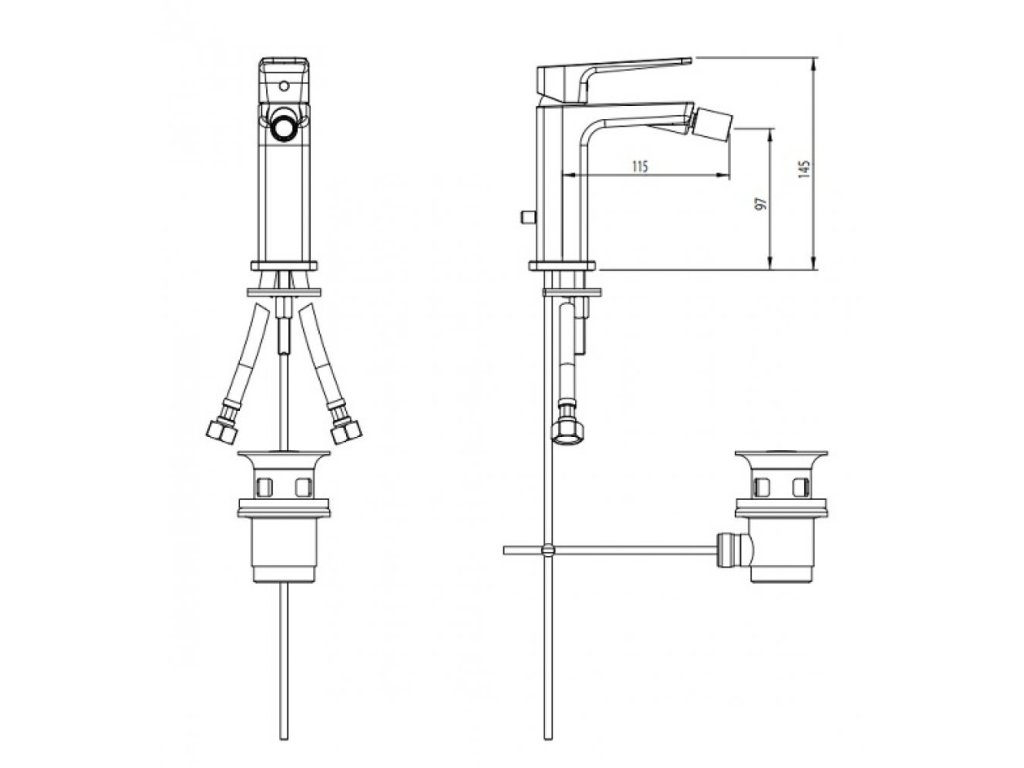 Páková bidetová stojanková vodovodná batéria s odtokovou garnitúrou.