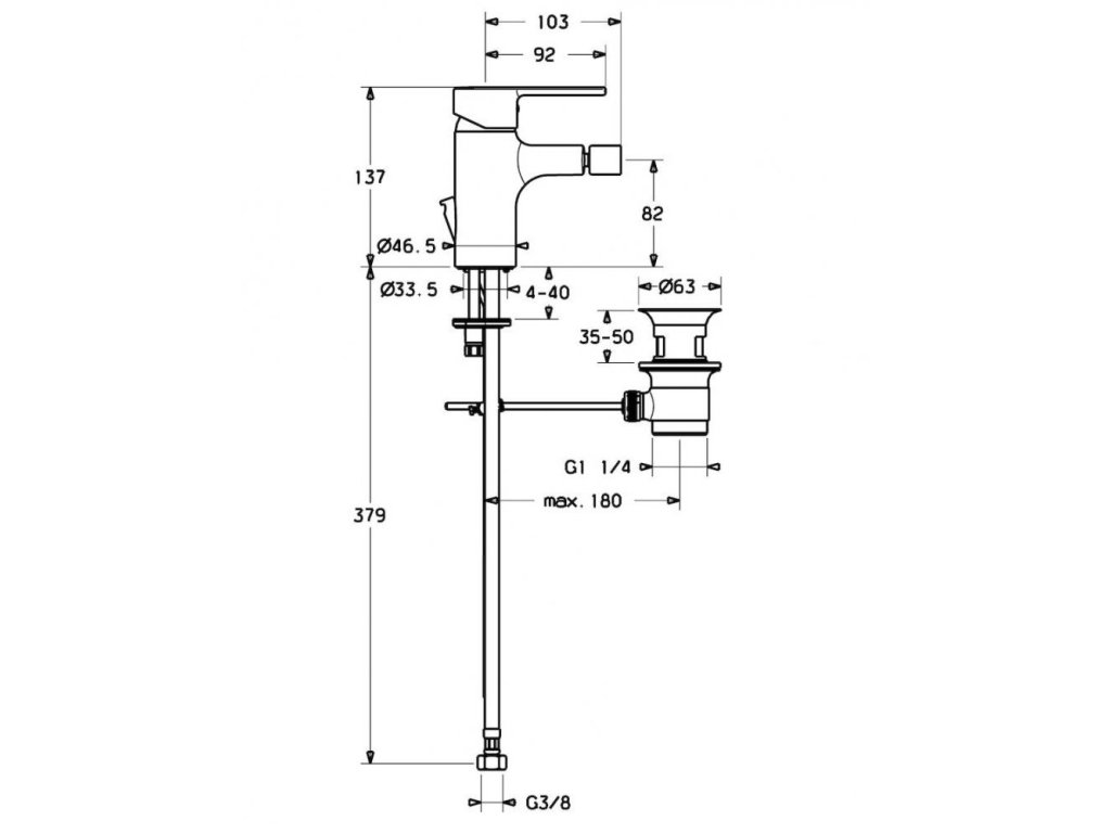 HANSARONDA - páková bidetová stojanková vodovodná batéria s odtokovou garnitúrou s tiahlom.