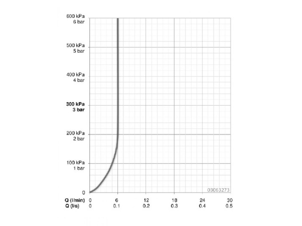 Prietok meraný pri hydraulickom tlaku 3 bar (s ovládačom prietoku): 6l/min.