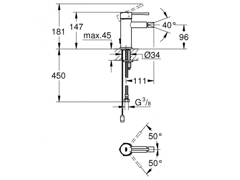 Páková bidetová stojanková vodovodná batéria Essence, s odtokovou súpravou (spúšťacia retiazka so závažím), veľkosť batérie S.