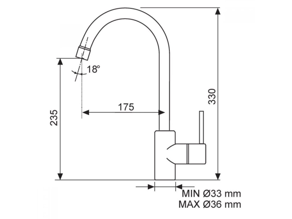 Páková drezová stojanková vodovodná batéria s otočným vyšším výtokovým ramenom. Rozsah otáčania: 360°.