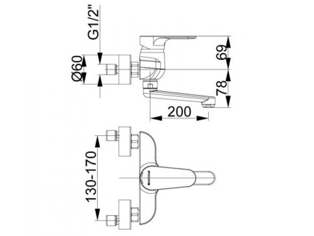 Páková drezová stenová vodovodná batéria s výtokovým ramenom dlhým 200mm. S perlátorom.