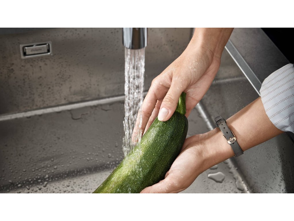 • inovatívny plochý sprchový prúd SatinFlow: jemný a šetrný k umývaniu krehkého riadu a ovocia bez otravného rozstrekovania. Multifunkčné sitko v balení vám pomôže pri oplachovaní.