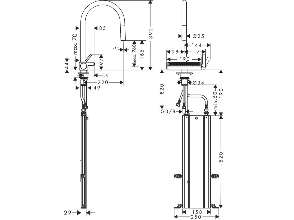 • spôsob montáže: pripojenie pomocou hadíc G 3/8.