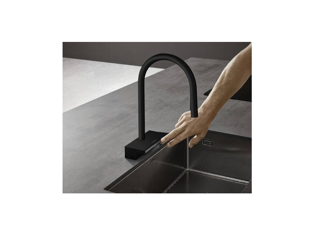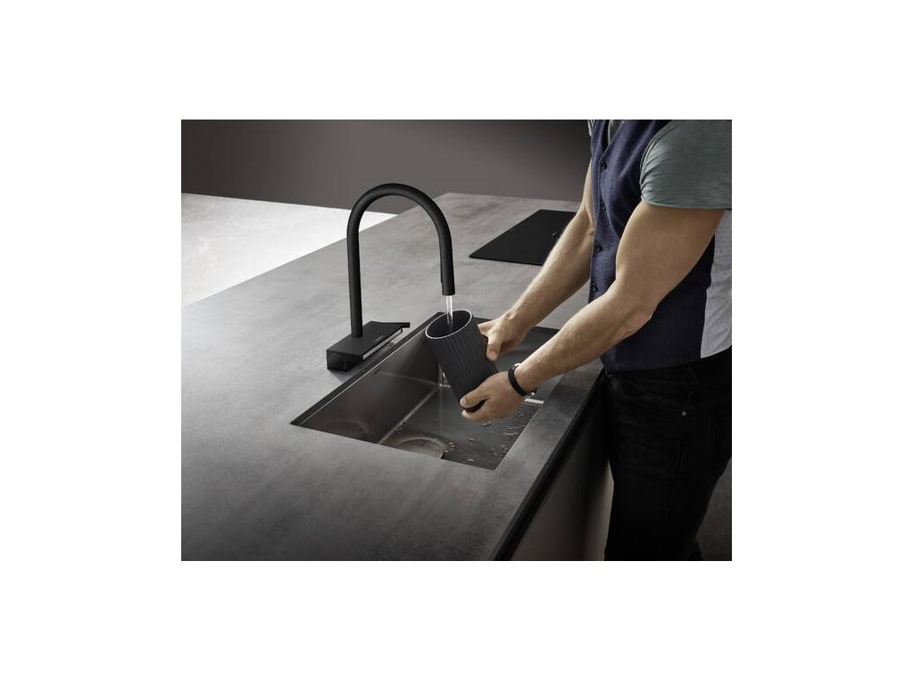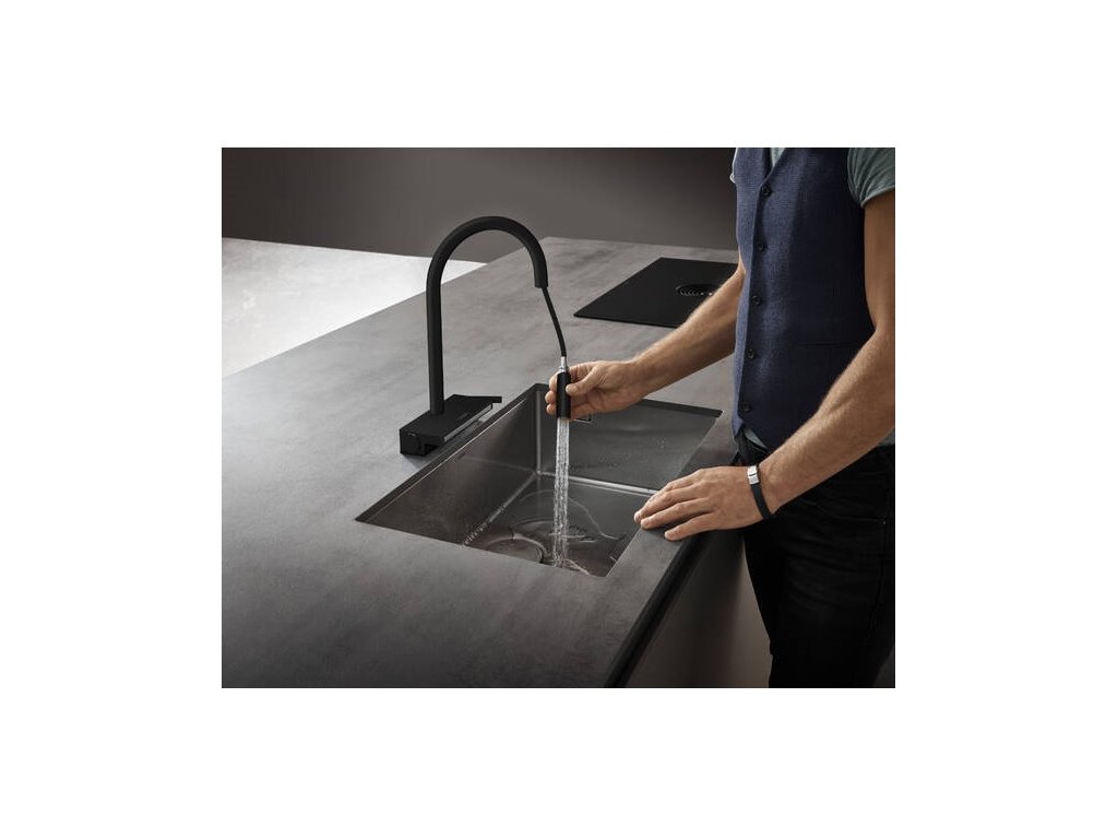Batéria upúta na prvý pohľad aj svojím dizajnom: nadčasová matná čierna farba, jemné línie a minimalistický vzhľad vnesú do vašej kuchyne kus luxusu a sofistikovanosti. vďaka čomu sa batéria stane dominantou vašej kuchyne.