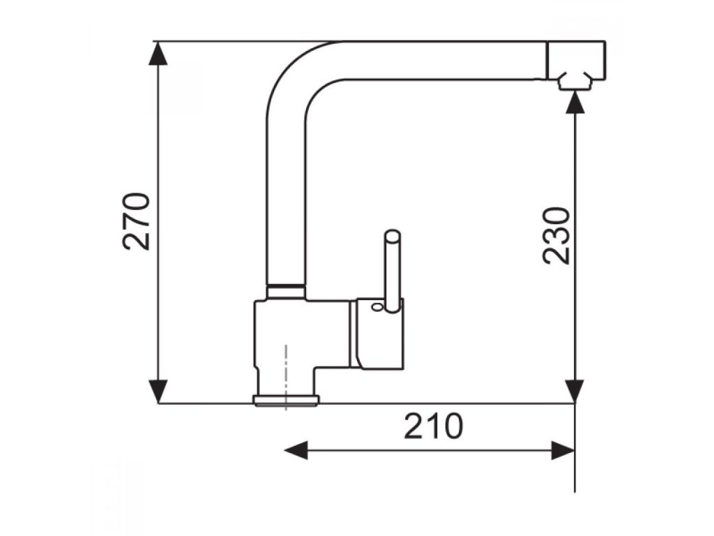 Vyššia drezová stojanková vodovodná batéria s bočnou pákou. Rameno je otočné v rozsahu do 360°.