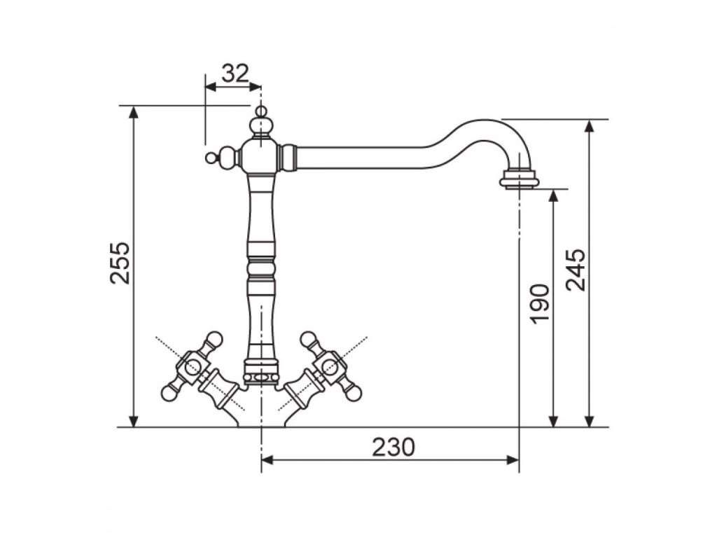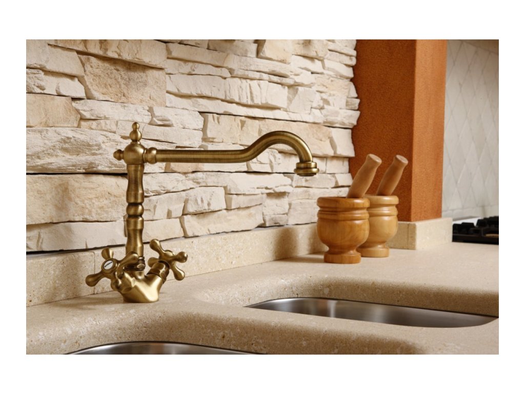 Vršková drezová stojanková vodovodná batéria sa ovláda pomocou dvoch klasických kohútikov. Vďaka retro dizajnu sa hodí do rustikálnych kuchýň. Batéria má otočné výtokové ramienko s rozsahom otáčania plných 360°.