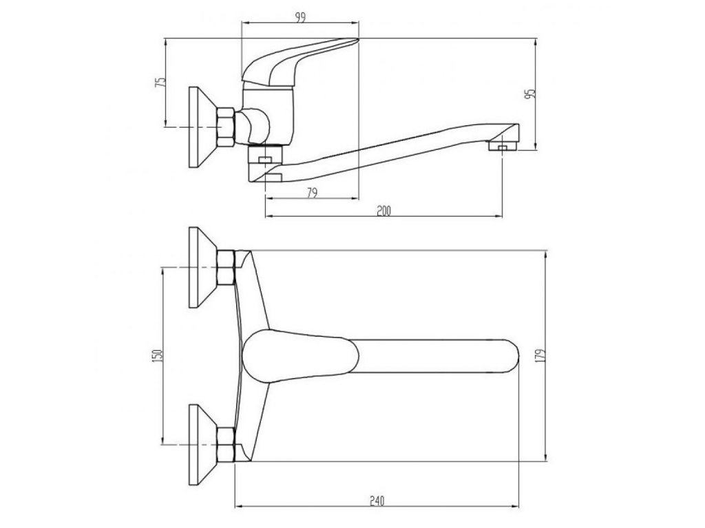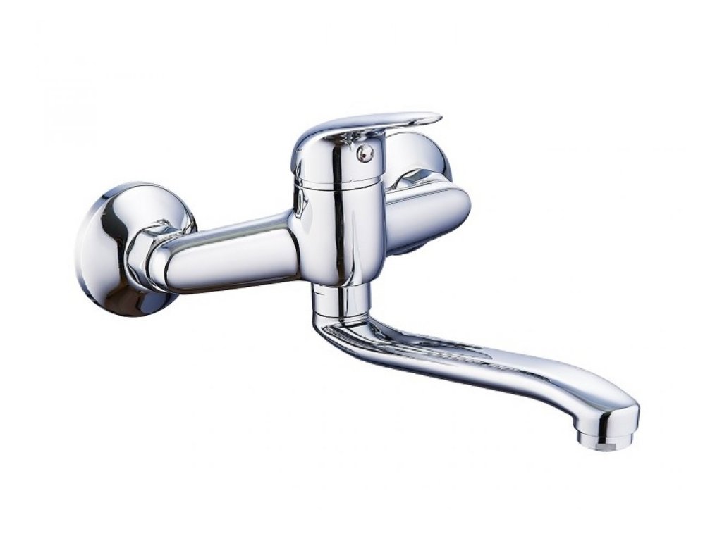 Páková drezová stenová vodovodná batéria s liatym výtokovým "Z" ramienkom s dĺžkou 20cm.