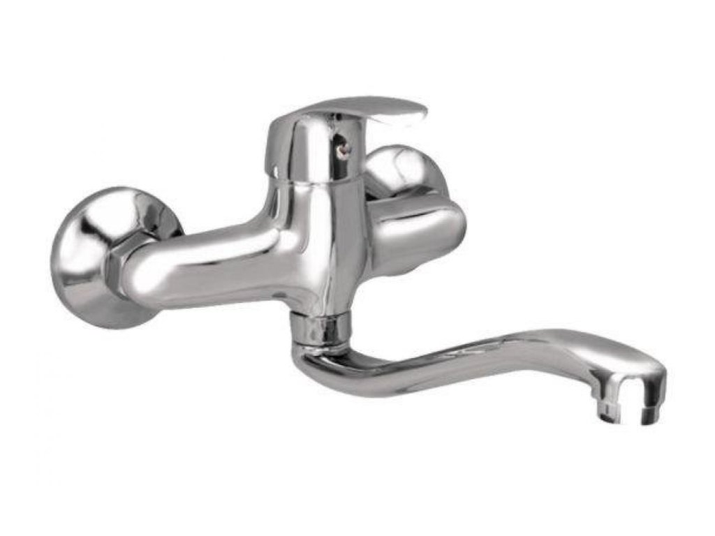Páková drezová či umývadlová stenová vodovodná batéria s rovným liatym 20cm "Z" výtokovým ramenom.