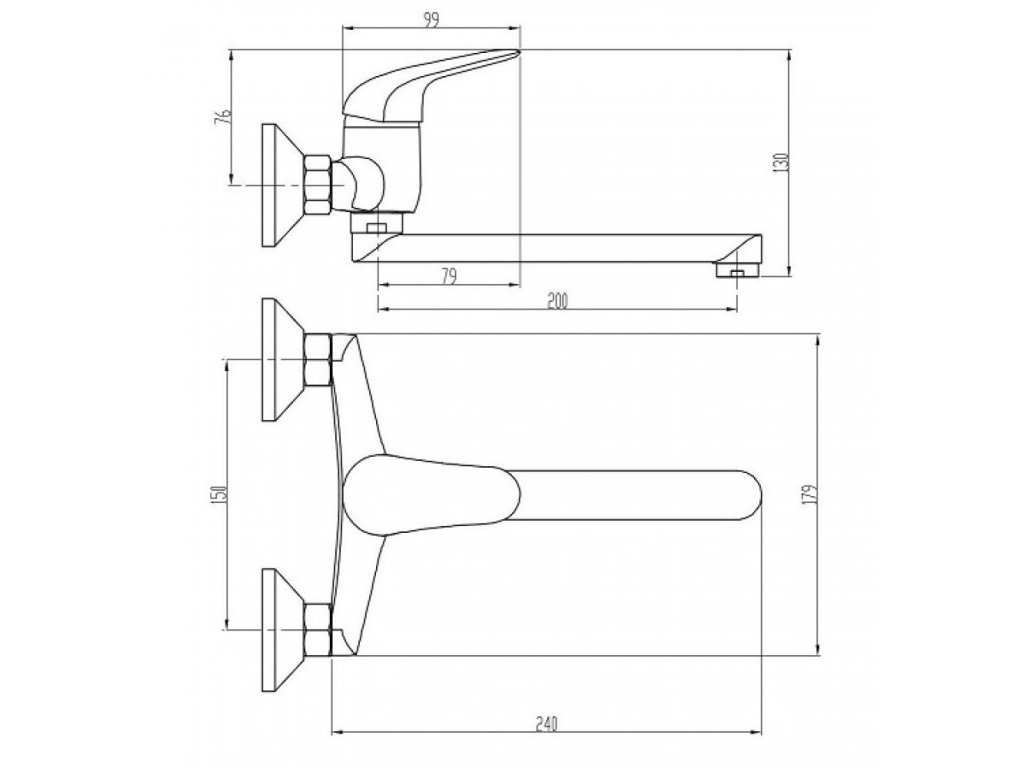 Páková drezová stenová vodovodná batéria s rovným liatym výtokovým ramenom dĺžky 20cm.