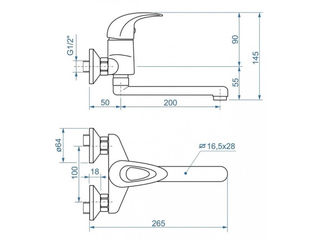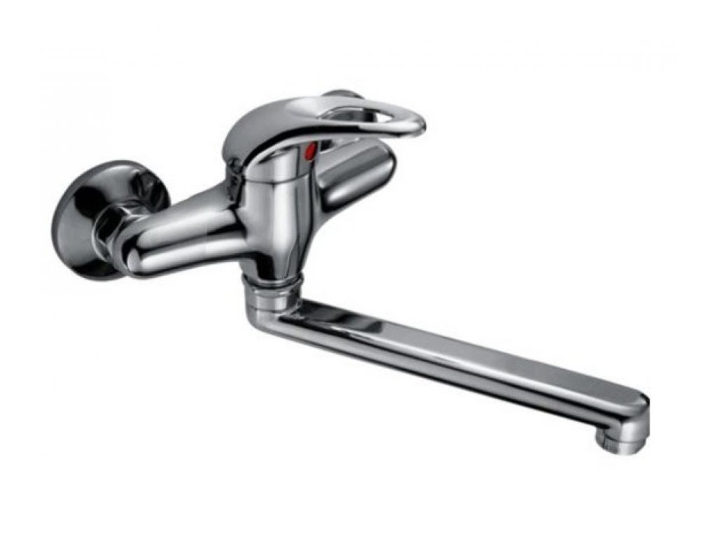 Páková drezová či umývadlová stenová vodovodná batéria s rovným liatym 20cm výtokovým ramenom.