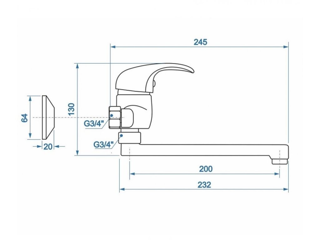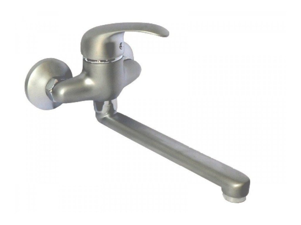 Páková drezová či umývadlová stenová vodovodná batéria s rovným liatym 20cm výtokovým ramenom.