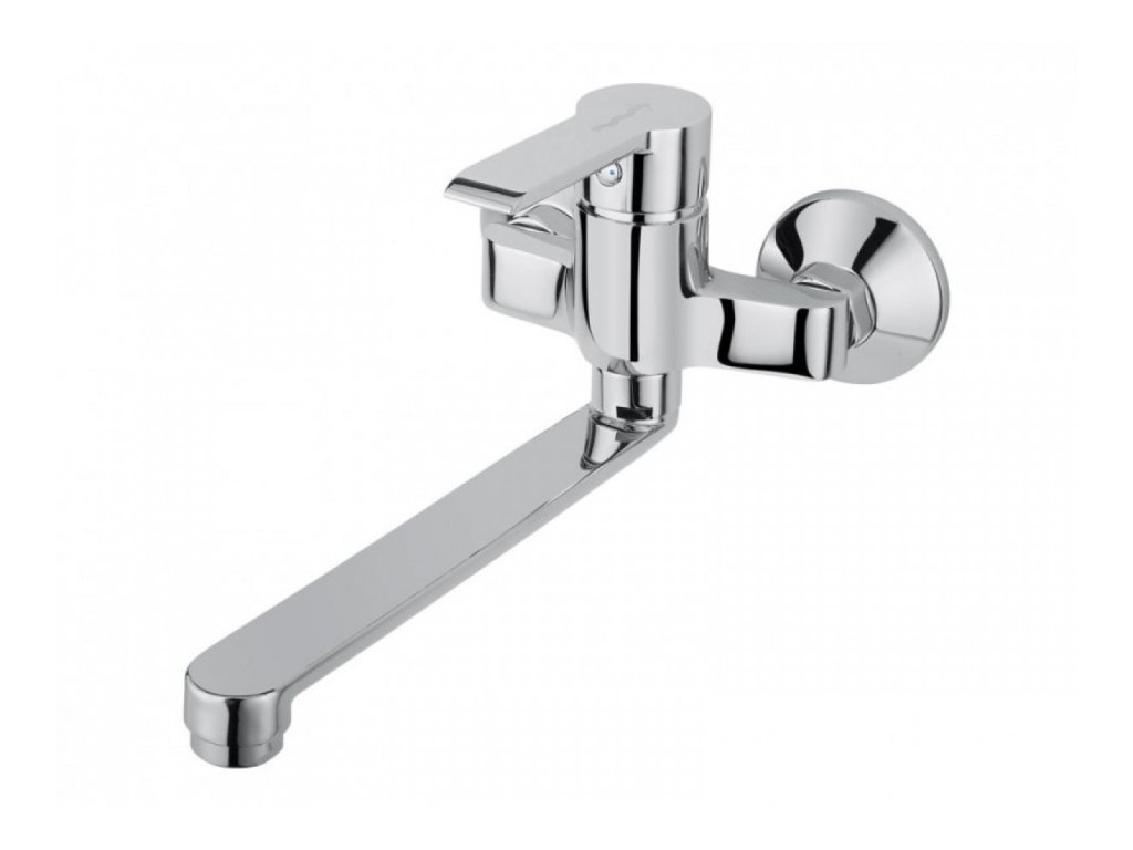 Páková drezová či umývadlová stenová vodovodná batéria s rovným liatym 20cm výtokovým ramenom.