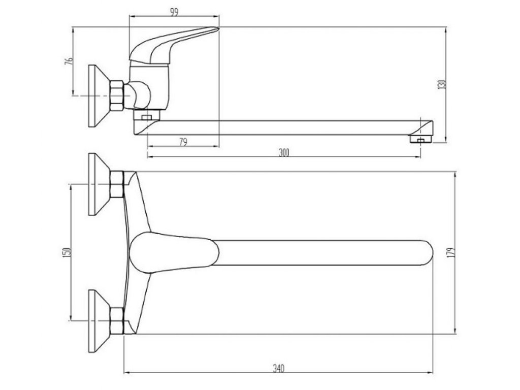 Páková drezová stenová vodovodná batéria s rovným liatym výtokovým ramenom dĺžky 30cm.