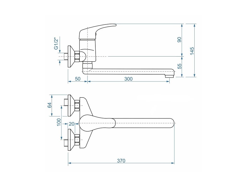 Páková drezová stenová vodovodná batéria s rovným liatym 30cm výtokovým ramenom.