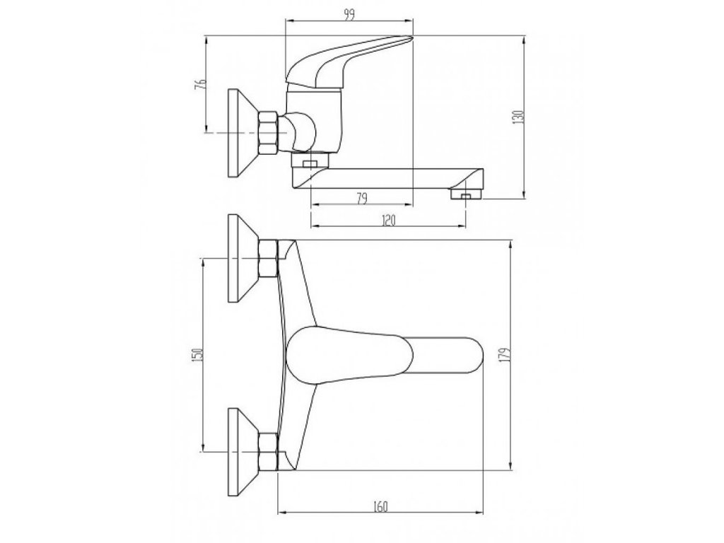 Drezová batéria nástenná PLUTO rovné rameno 12cm, rozstup 150mm, chróm