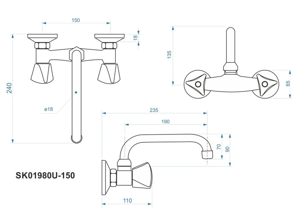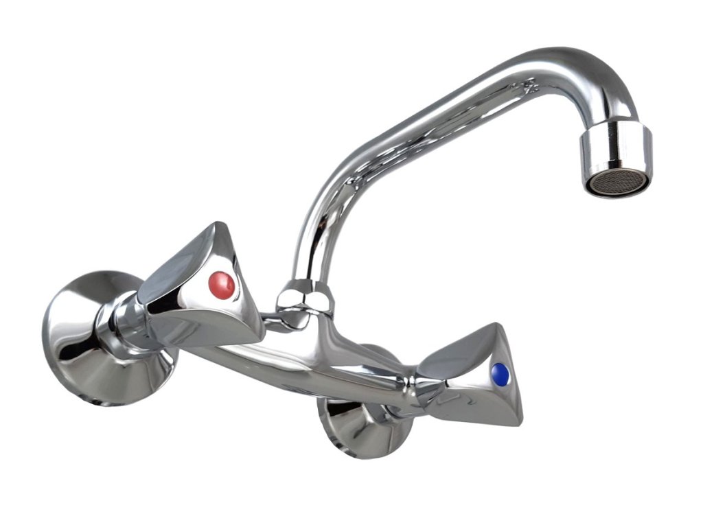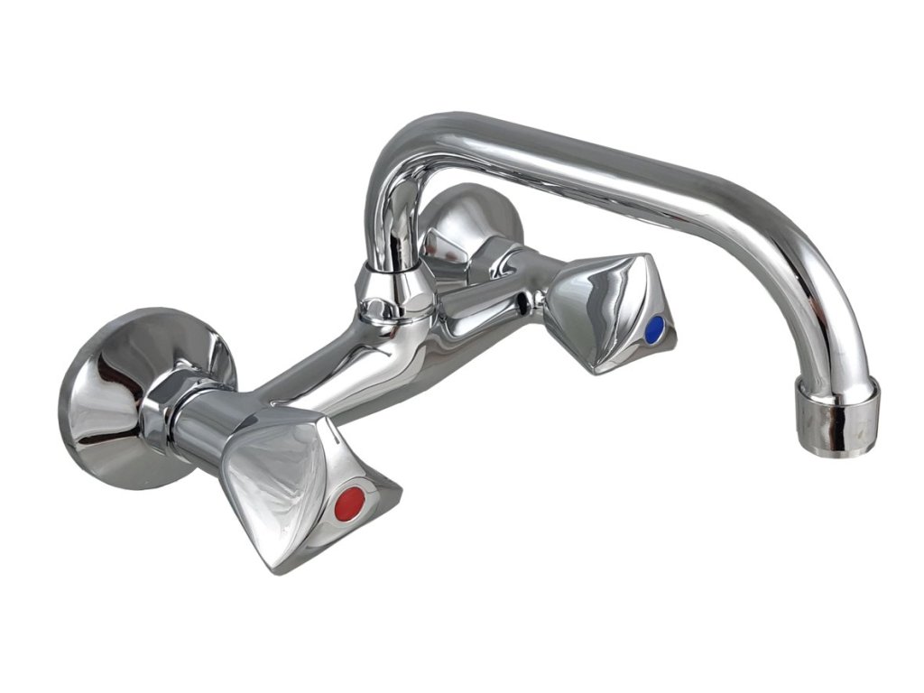 Klasická drezová stenová vodovodná batéria s trubkovým "U" výtokovým ramenom.Rozstup batérie je 150mm.