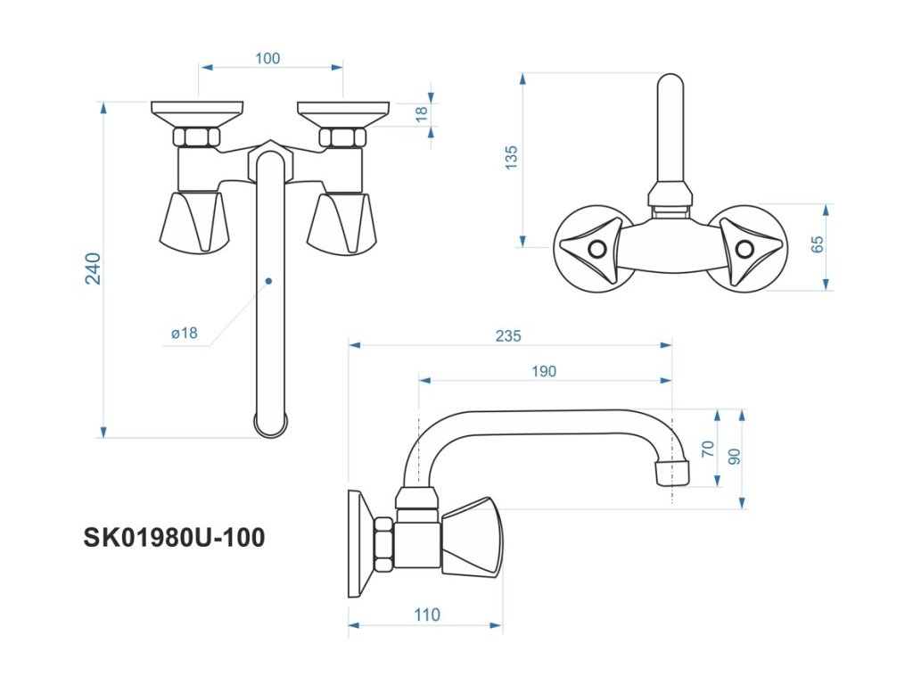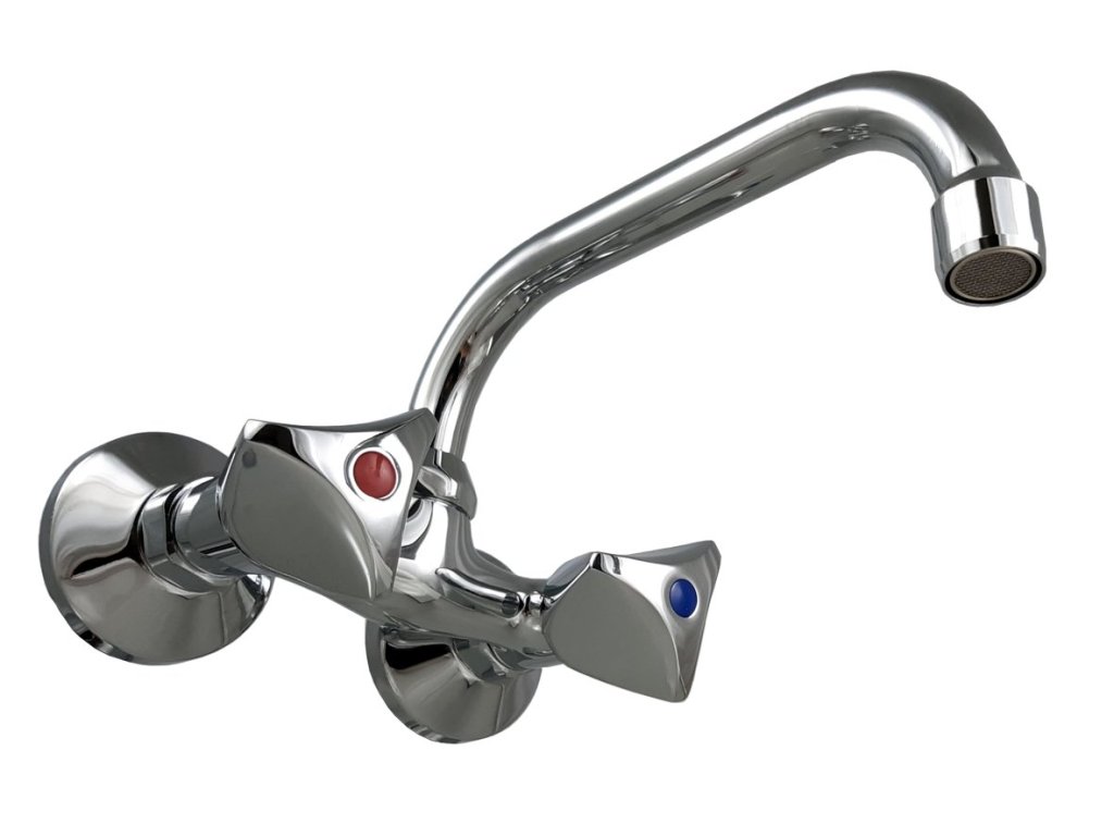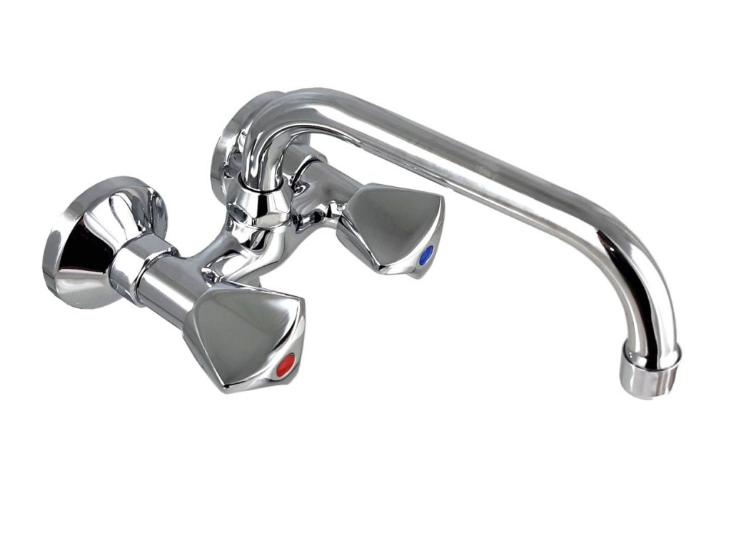 Klasická drezová stenová vodovodná batéria s trubkovým "U" výtokovým ramenom.Rozstup batérie je 100mm.