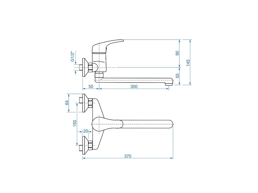 Páková drezová či umývadlová stenová vodovodná batéria s trubkovým 20cm "S" výtokovým ramenom.