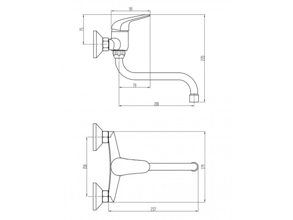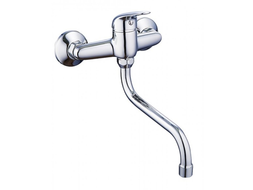 Páková drezová stenová vodovodná batéria s liatym výtokovým "S" ramenom dĺžky 20cm.