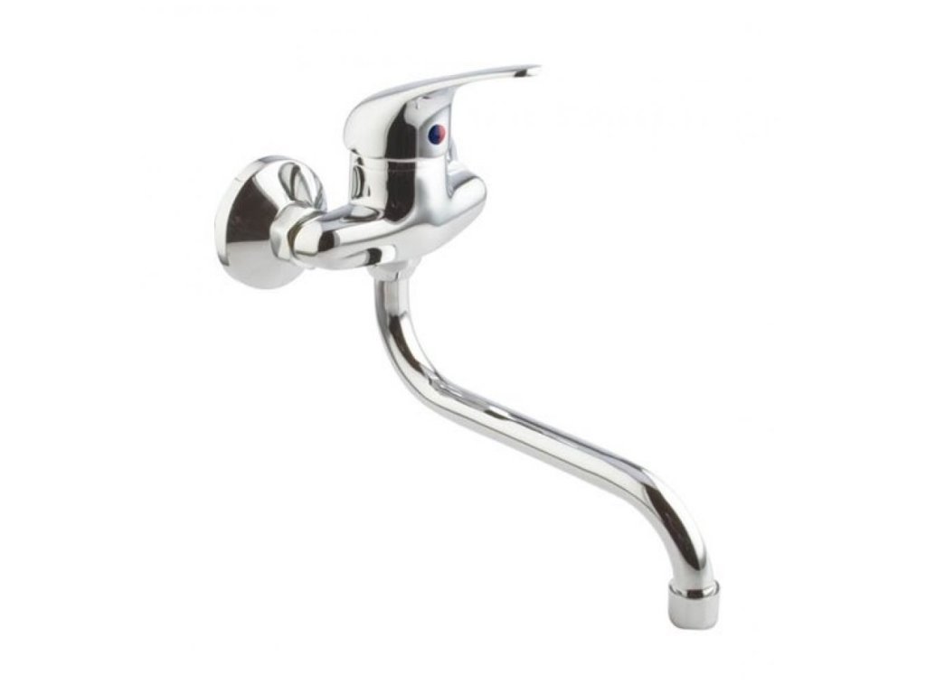 Páková drezová či umývadlová stenová vodovodná batéria s trubkovým 20cm "S" výtokovým ramenom.