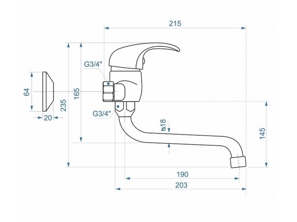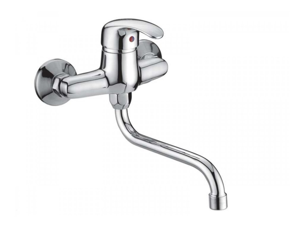 Páková drezová či umývadlová stenová vodovodná batéria s trubkovým 20cm "S" výtokovým ramenom.