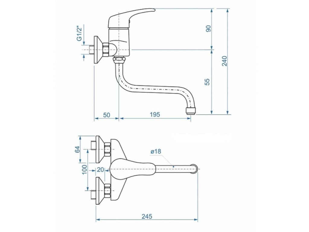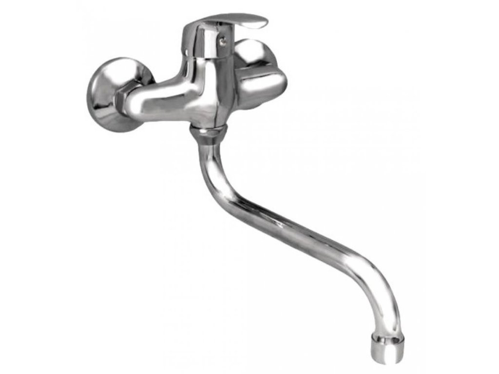 Páková drezová či umývadlová stenová vodovodná batéria s trubkovým 20cm "S" výtokovým ramenom.