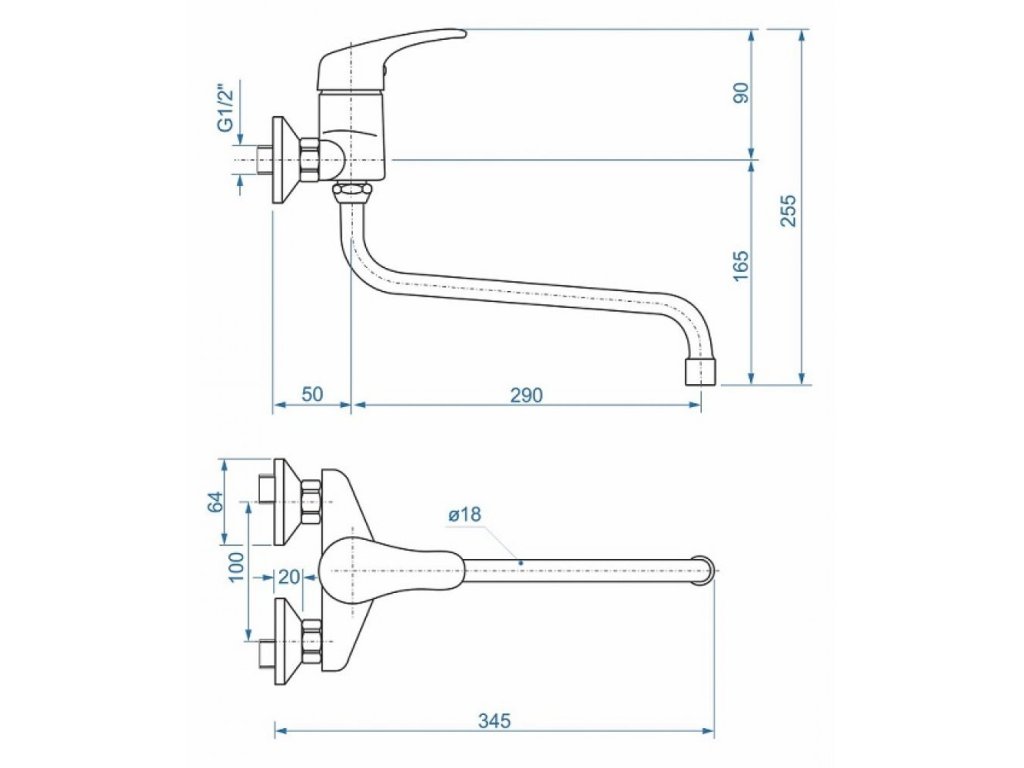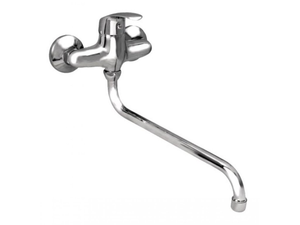 Páková drezová stenová vodovodná batéria s trubkovým 30cm "S" výtokovým ramenom.Rozstup batérie je 100mm.