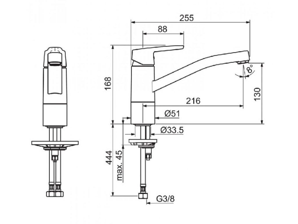 výtok: 120° otočný, alternatíva 60° odnímateľný doraz