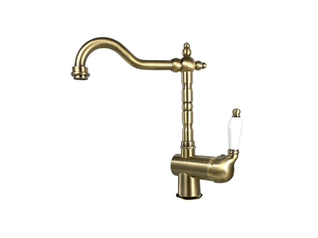 Vráťte sa v čase s elegantnou drezovou batériou DESY! Táto batéria od Aquaristo Style je skutočným skvostom retro dizajnu, ktorý ožíva vo vašej modernej kuchyni a razom vás prenesie do éry klasickej elegancie. Retro dizajn batérie DESY evokuje štýl minulých dekád. Zdobené mosadzné telo, elegantne tvarované ramienko aj biele detaily na páke vytvárajú harmonický celok, ktorý upúta pozornosť a stane sa dominantou vášho drezu aj celej kuchynskej linky. Tento štýlový kúsok dokonale ladí s tradičnými i modernými interiérmi, vnášajúc do priestoru nádych nostalgie, romantiky a sofistikovanosti. Batéria disponuje otočným ramienkom, ktoré umožňuje nasmerovať prúd vody presne tam, kde to potrebujete.