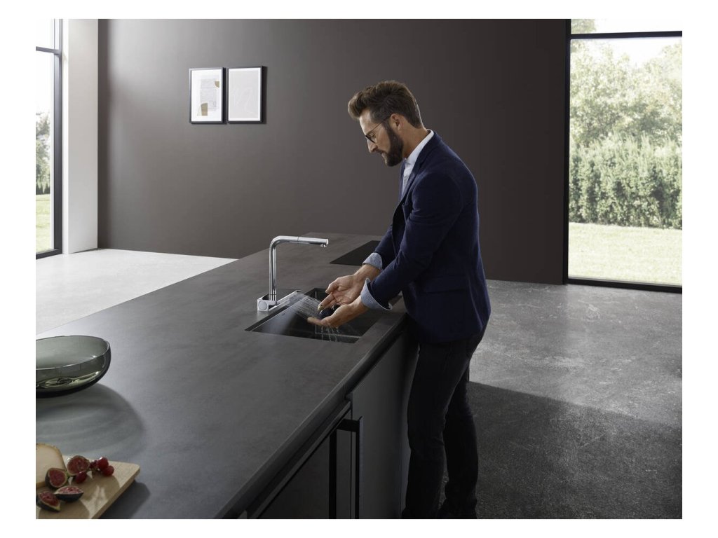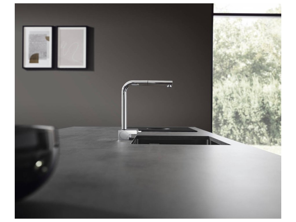 Milujete inovatívne technológie a nadčasový dizajn a radi by ste ho preniesli aj vašej domácnosti? Potom vás nepochybne nadchne drezová batéria AQUNO SELECT M81 od Hansgrohe, ktorá do vašej kuchyne vnesie nový rozmer pohodlie a flexibility. Vďaka nej zabudnete na obyčajnosť a to hlavne pre jej vysokú funkčnosť. Batéria sa môže pýšiť plochým sprchovým prúdom Satin Flow: je veľmi jemný a šetrný aj k oplachovaniu krehkého riadu či drobného ovocia, a to bez otravného striekania vody. Batéria Aquno Select M81 je opatrená výsuvnou koncovkou Pull-Out so sprškou, ktorú môžete prepínať jednoducho pomocou tlačidla Select. Súčasťou je i praktický magnetický držiak spršky MagFit. Sprchová hadica vám umožní maximálny rozsah pohybu a maximum komfortu pri umývaní riadu, drezu či napĺňaní hrncov a váz: vytiahnuť ju môžete až do dĺžky 76cm. Hladké a tiché vedenie sprchovej hadice zabezpečuje sBox ukrytý pod drezom. Jeho plochý tvar šetrí v skrinke miesto.