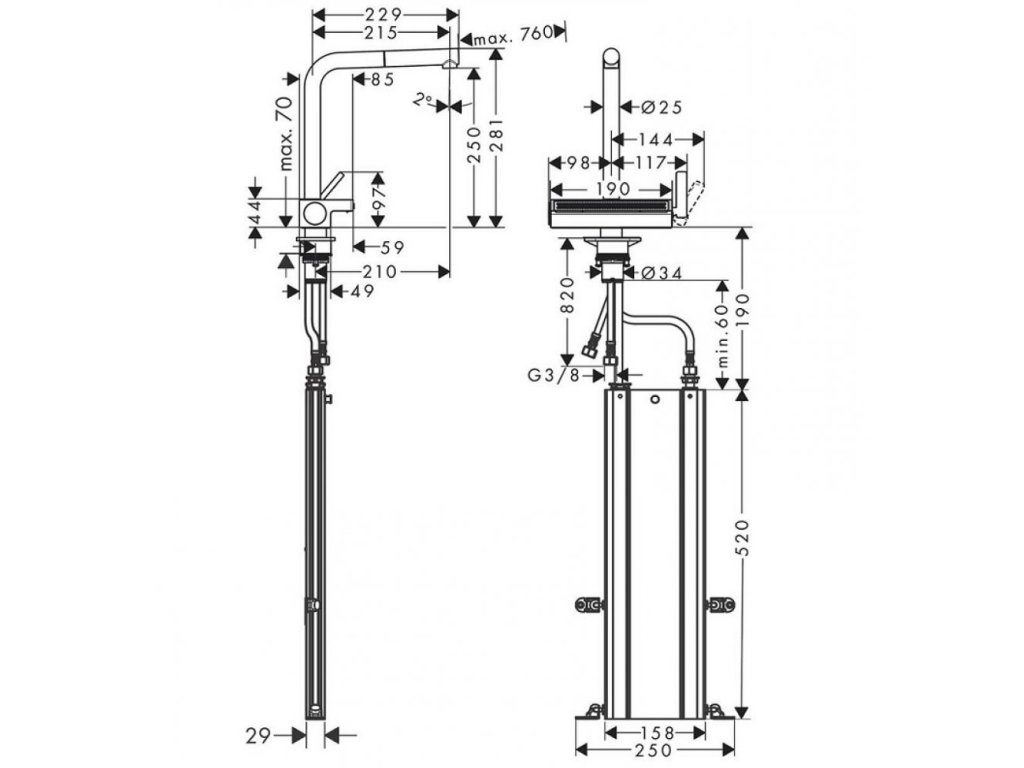 • spôsob montáže: pripojenie pomocou hadíc G 3/8.