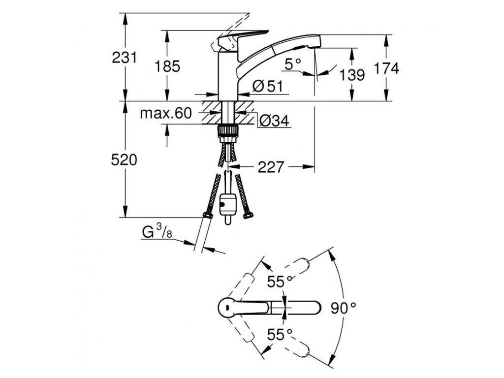 GROHE FastFixation - rýchla a jednoduchá inštalácia bez nutnosti použitia náradia. Flexibilné pripojovacie hadičky 3/8".